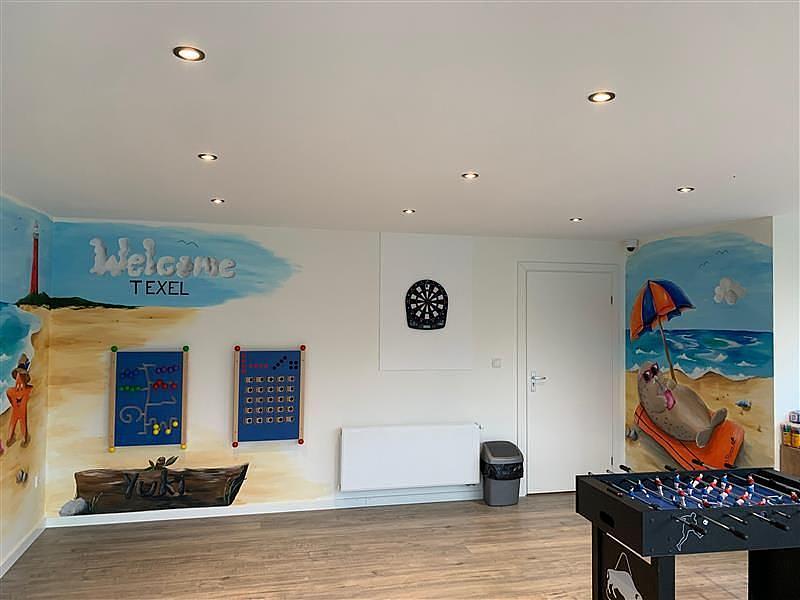 Aan de achterzijde van het hoofdgebouw is onze animatieruimte met onder andere: tafelvoetbal, darten, lego, kapla, puzzels, kleur- en doeboekjes.